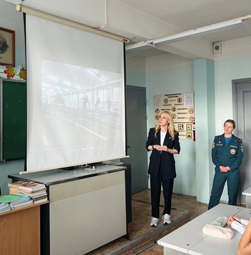 18 сентября 2025 в школе № 552 Пушкинского района прошел урок безопасности при участии первого заместителя председателя совета Пушкинского отделения СПБ ГО ВДПО Ивановой Екатерины Валерьевны, Инструктора противопожарной профилактики СПБ ГКУ «ПСО Пушкинского района» Ляшенко Натальи Николаевны и инспектора надзорной деятельности Барановой П.В.