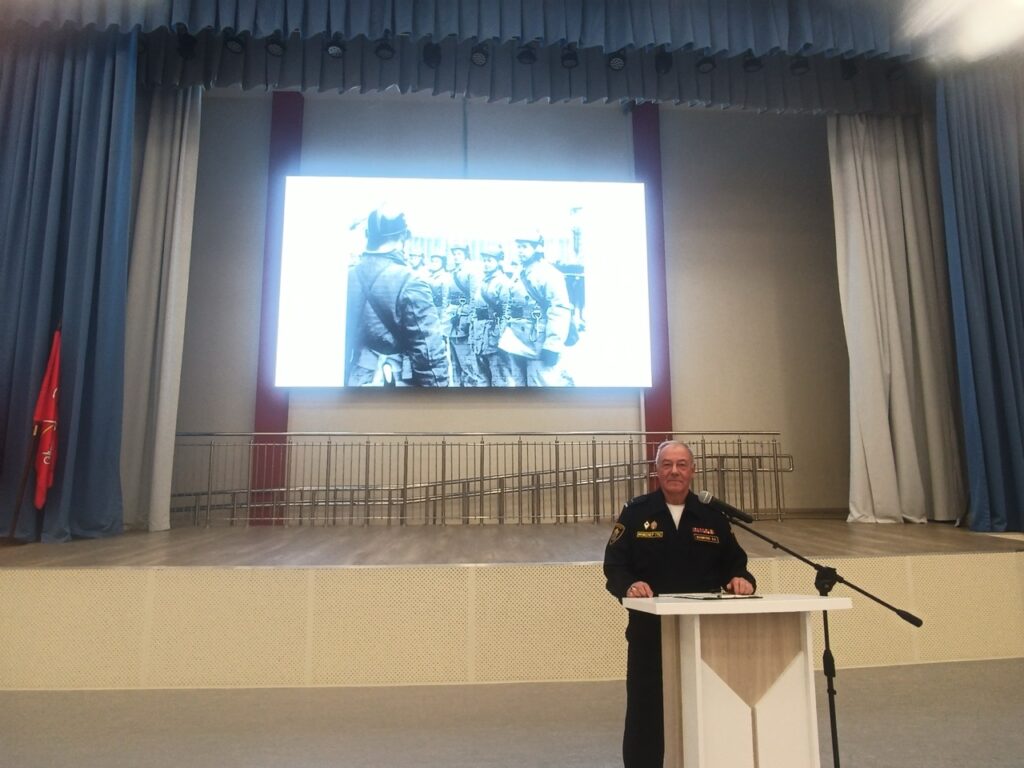 Он рассказал о трудном военном времени, о подвигах солдат, о тружениках тыла, о детях-героях принимавших участие в боевых действиях, о подвигах пожарных блокадного Ленинграда и сотрудниках ПСО «Невского района участвующих в зоне СВО.