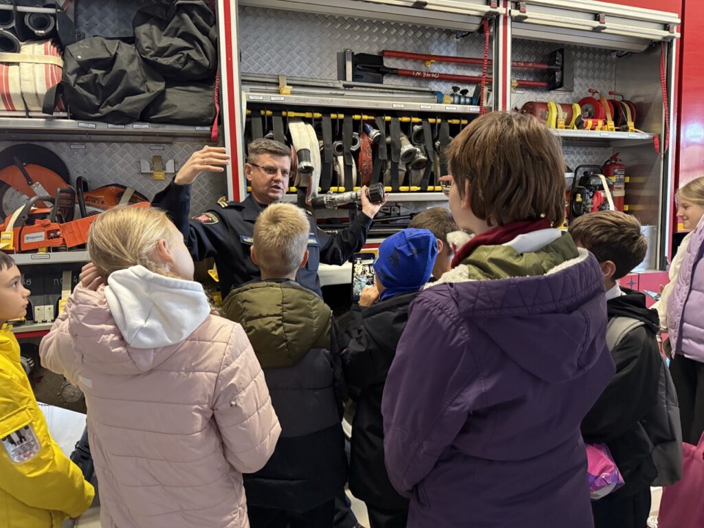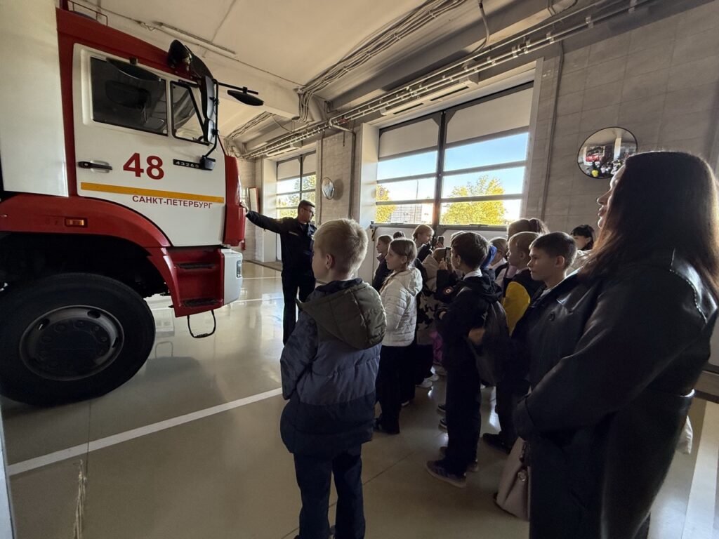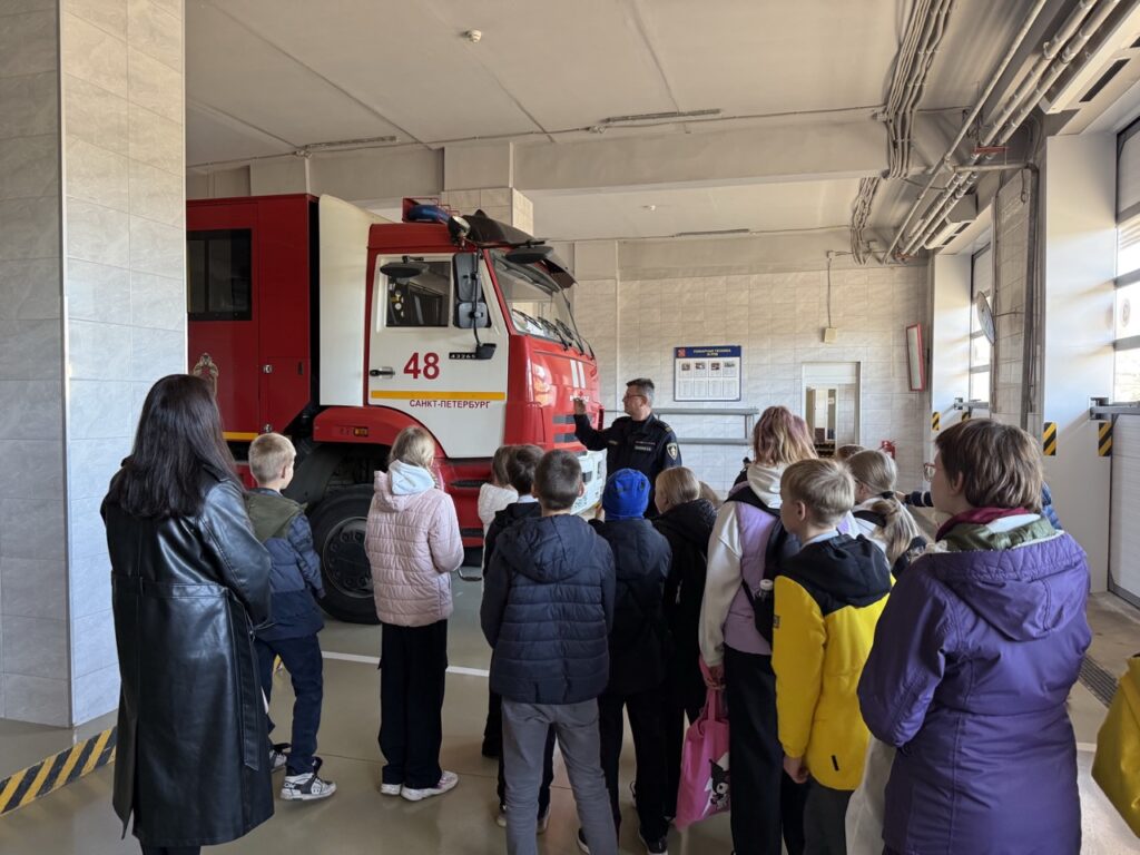 25 сентября ученики 401 школы Колпинского района пришли в гости к пожарным 48 пожарной части. Пожарно-спасательный отряд всегда радушно принимает гостей. Начальник пожарной части (профилактической) Сазонов Сергей Михайлович рассказывает про быт пожарных. Как проходят дежурные сутки пожарных. Чем они занимаются, если нет пожаров. Рассказал ребятам про пожарные автомобили и пожарно-техническое вооружение, которым пользуются работники ПСО при тушении пожаров. Заместитель председателя совета Колпинского отделения ВДПО Мехоношина Лидия Лольевна рассказала ребятам, как организовалась пожарная охрана в нашем городе. Как и чем тушили пожары во время Великой Отечественной войны. Напомнила ребятам правила пожарной безопасности. Ребята задавали много интересующих их вопросов. Мероприятие прошло интересно и познавательно. По окончании – традиционное фото на фоне пожарного автомобиля. Ребята поблагодарили всех за интересную и познавательную экскурсию.