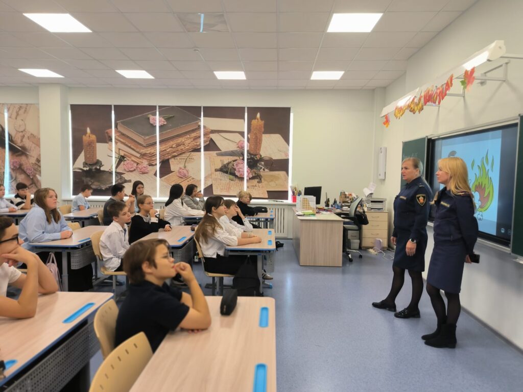 В день пожарной безопасности 23.09.2025 при участии первого заместителя председателя совета Пушкинского отделения СПБ ГО ВДПО Ивановой Екатерины Валерьевны и Инструкторов противопожарной профилактики СПБ ГКУ «ПСО Пушкинского района» Ляшенко Натальи Николаевны и Чекаловой Ольги Александровны были проведены занятия по пожарной безопасности в классах Лицея № 408 и Школы № 511 Пушкинского района Санкт-Петербурга.