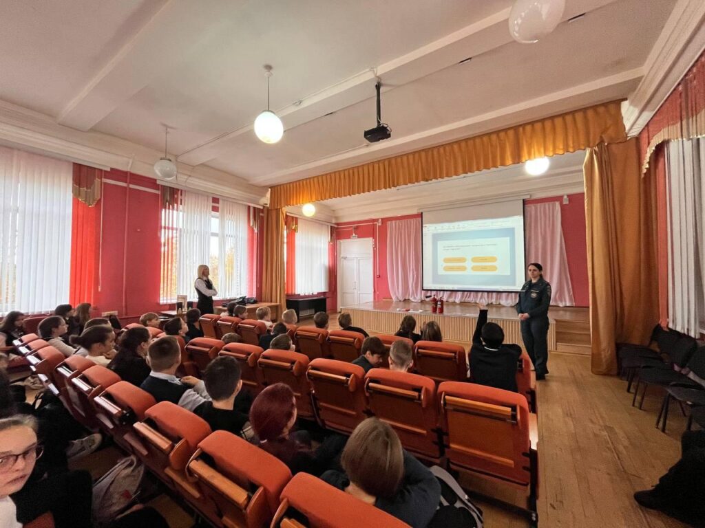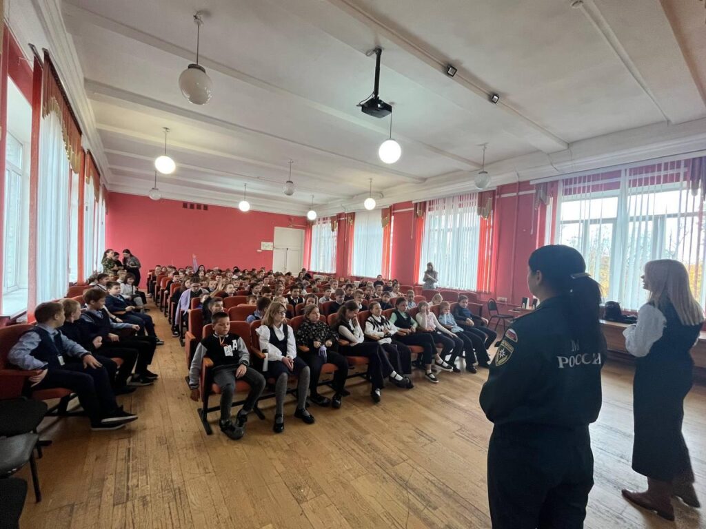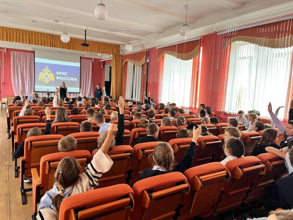 Спасатели уделили внимание правильному поведению при эвакуации: в школе при срабатывании пожарной сигнализации и речевого оповещения ученики обязаны организованно выйти из помещений, под руководством учителя и сотрудников школы. Для закрепления знаний ребята обсудили возможные ситуации и научились действовать правильно и безопасно.