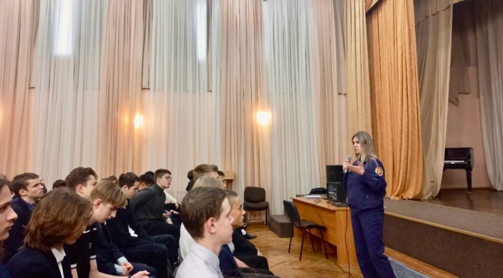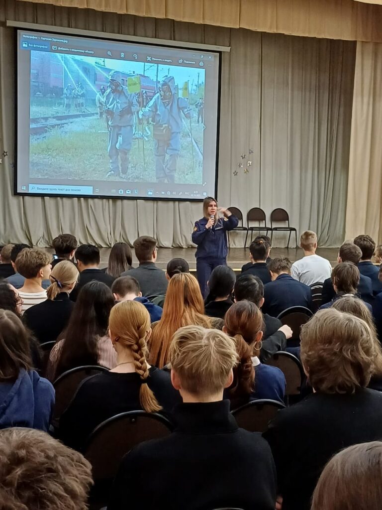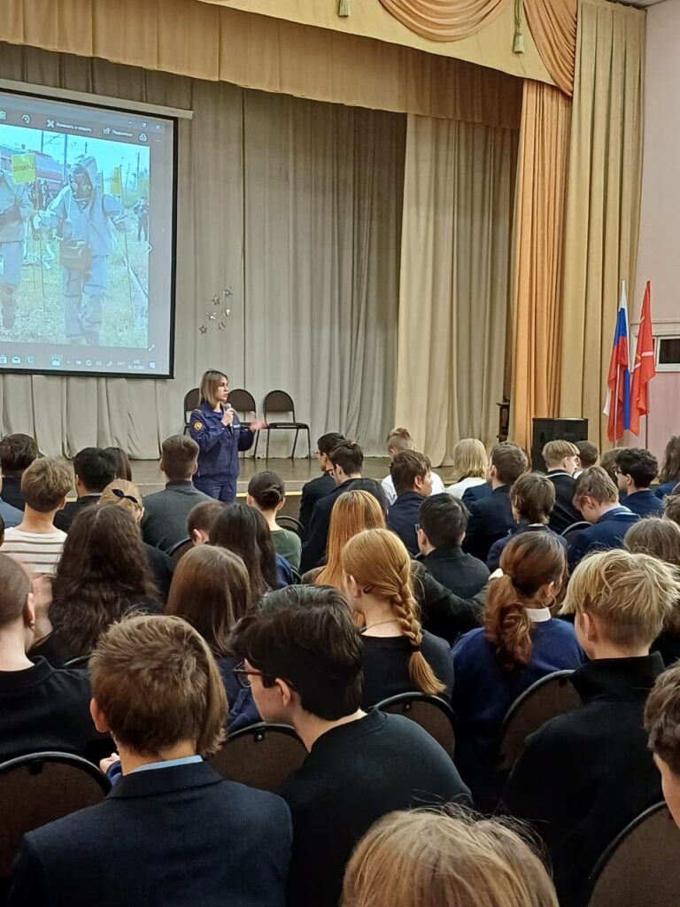 В начале октября специалисты рассказали учащимся старших классов ГБОУ школы №494 историю создания гражданской обороны, обсудили с ребятами вопросы пожарной безопасности и правила поведения по сигналам оповещения ГО.