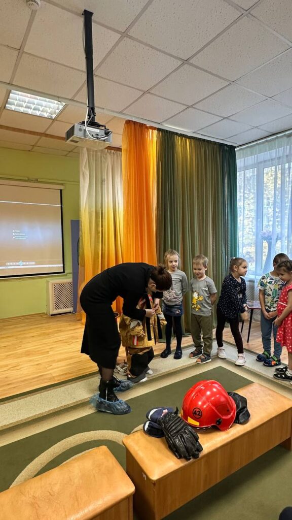 Ребята с интересом слушали рассказ, активно участвовали в беседе, отгадывали загадки и делились своими историями. Особое внимание вызвало знакомство с профессией пожарного: дети рассматривали настоящие каски, перчатки, ремни и защитную одежду, узнали, для чего нужно каждое средство экипировки.