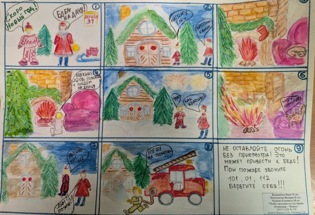 12 ноября, в ГБОУ ДОД «Дворец детского (юношеского) творчества Фрунзенского района Санкт-Петербурга», подведены итоги районного этапа конкурса видеороликов и детских тематических рисунков – рассказов в картинках (комиксов) «Огонь без_опасности». В конкурсе принял участие 41 ребёнок, представлено 28 работ из 19 образовательных учреждений. Жюри (в состав которого входили представители образовательных учреждений, Управления по Фрунзенскому району ГУ МЧС России, Фрунзенского отделения ВДПО и СПб ГКУ «ПСО Фрунзенского района») оценило работы детей. При оценке учитывались следующие критерии: соответствие тематике, творческий подход, оригинальность композиционного решения, концептуальное решение. По результатам проведённого районного этапа конкурса, жюри постановило: направить работы победителей, занявших 1-е места, для участия в региональном этапе конкурса.