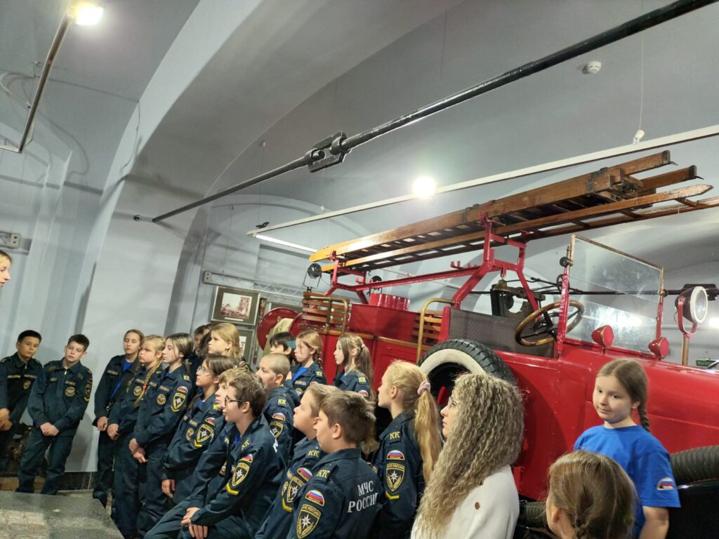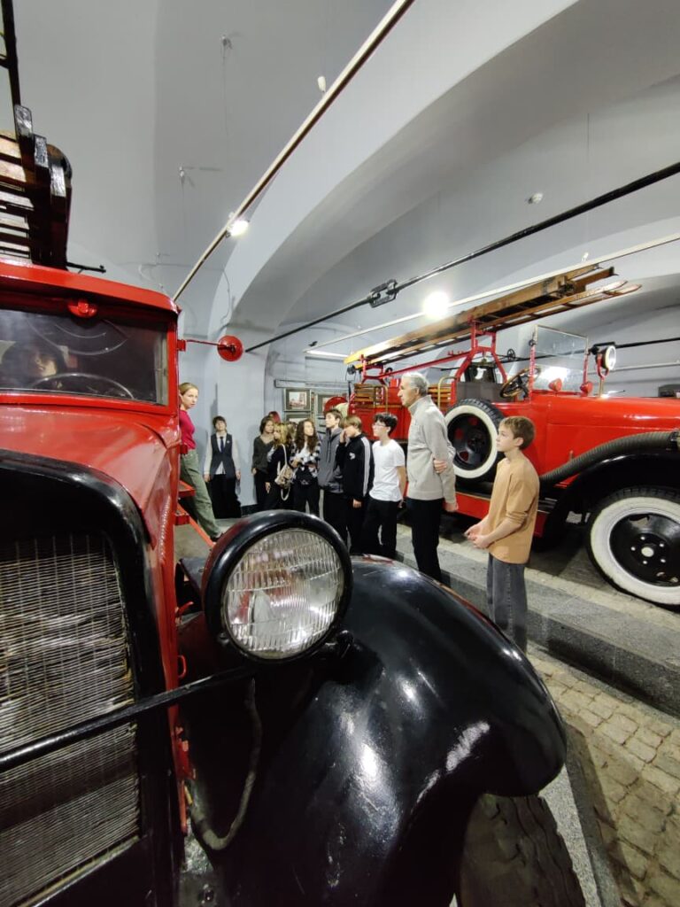 Дети прикоснулись к славной истории пожарной службы города, узнали о подвигах и самоотверженном труде тех, кто несет службу на “огненном фронте”. У входа их встретил монумент, увековечивший память пожарных-героев, отстоявших блокадный Ленинград и отдавших свои жизни при выполнении профессионального долга. Этот памятник, созданный скульптором Л.К. Лазаревым и архитектором В.В. Поповым, был торжественно открыт 28 апреля 1995 года. Гордостью выставки является уникальная, самая большая в России коллекция старинных пожарных машин. Ребята смогли вживую увидеть несколько таких раритетов, узнать их занимательные истории и запечатлеть себя на фоне этих исторических экспонатов.