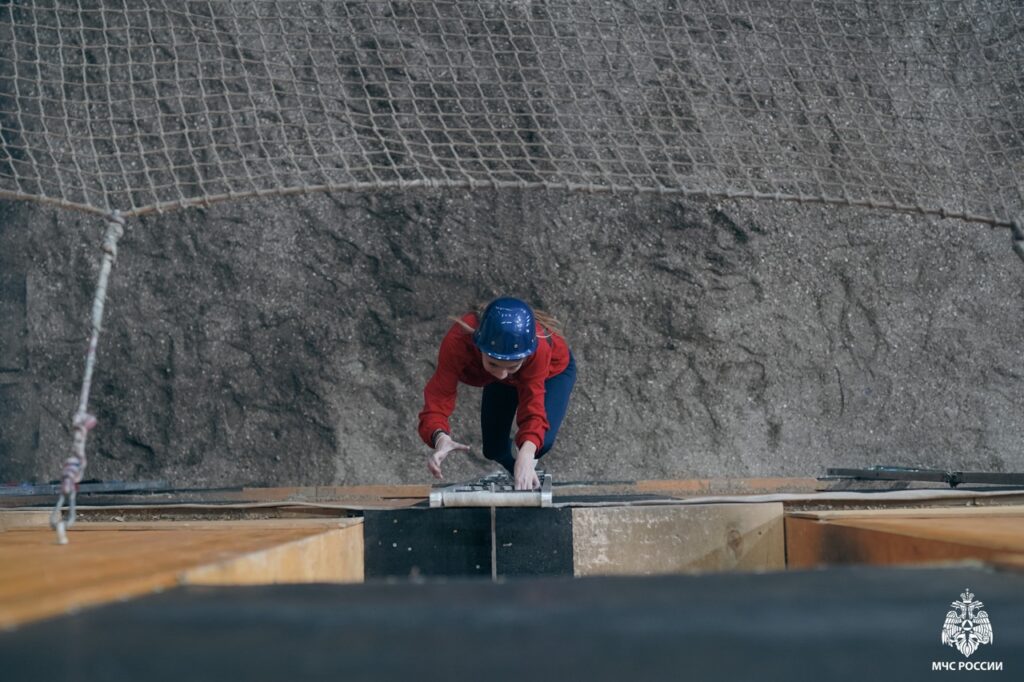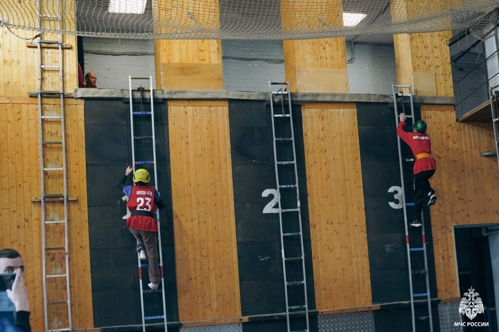 Ребята выполнили подъем по штурмовой лестнице в окно 2 этажа учебной башни и преодолели 100-метровую полосу препятствий.