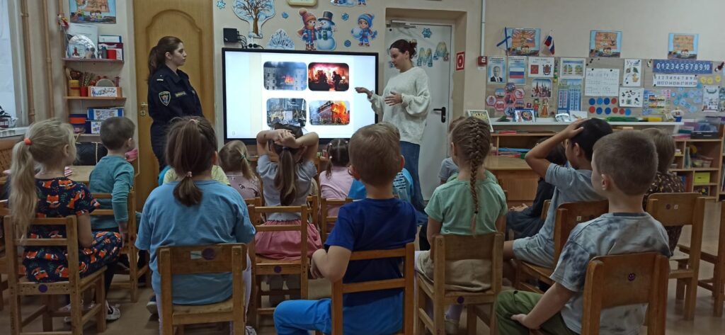 Программа занятия включала презентацию с иллюстрациями опасных ситуаций, викторину для закрепления материала и мультфильм о правильном использовании огнетушителя.
