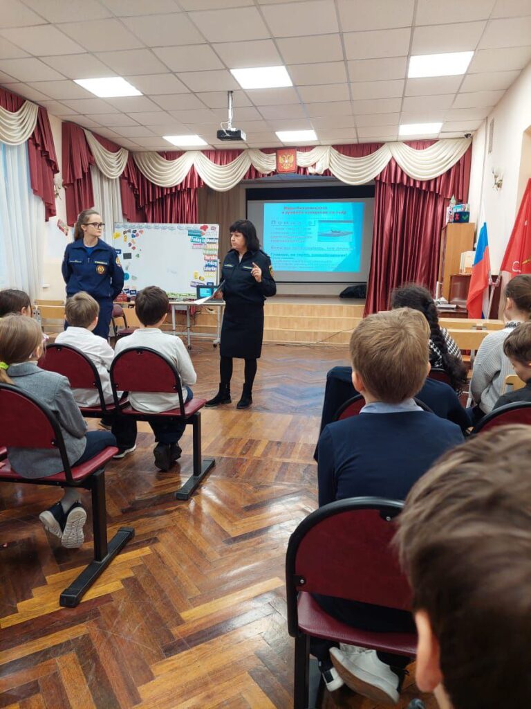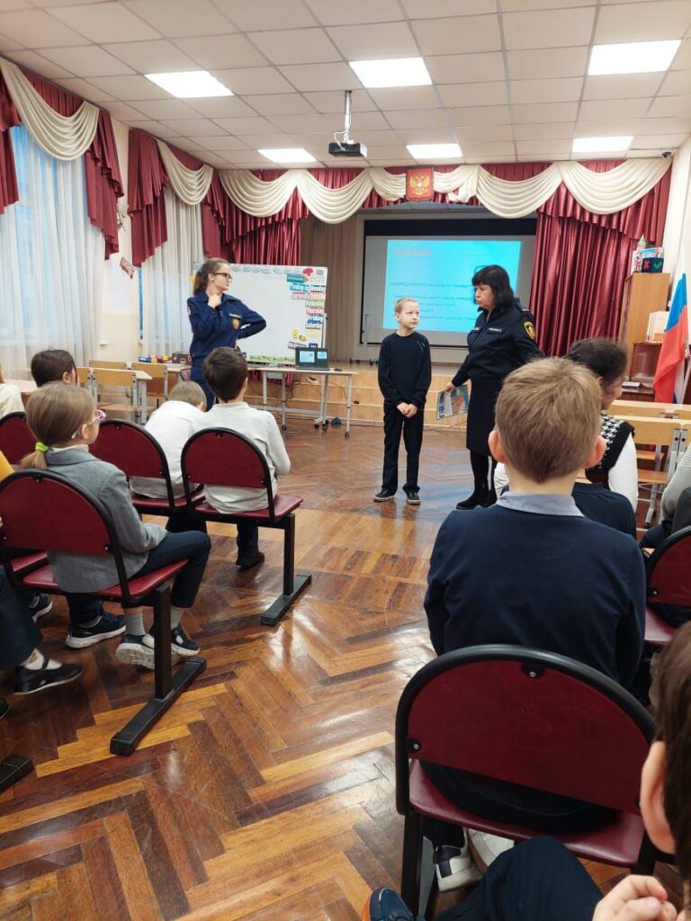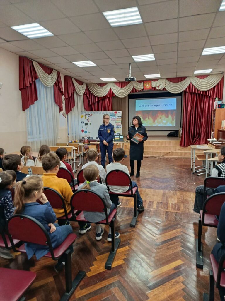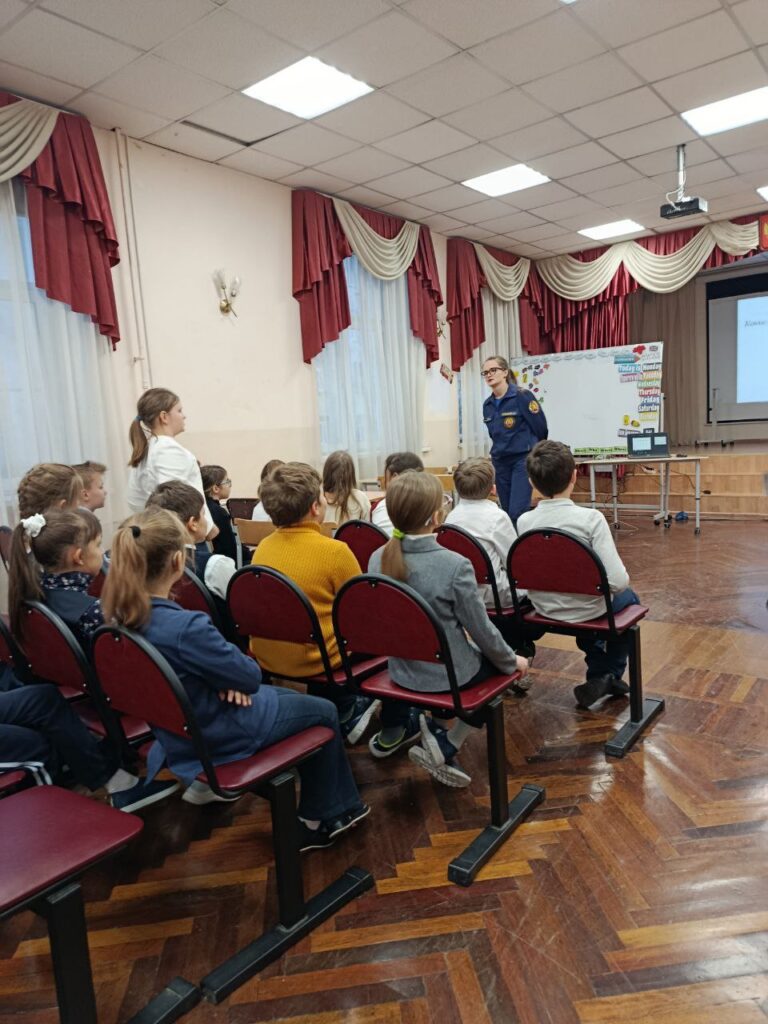 Также важной темой для обсуждения стала «Пожарная безопасность дома и в школе». Разобрали причины пожаров, чем можно потушить небольшое возгорание. Повторили действия учащихся при эвакуации. Также разобрали правила украшения дома к празднику и безопасном проведении праздничных выходных.