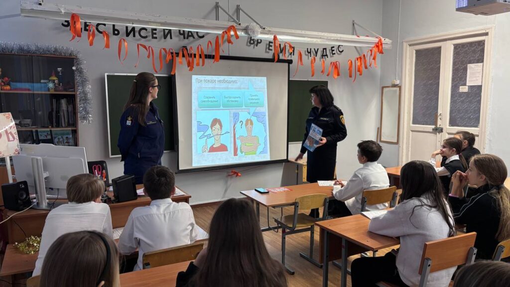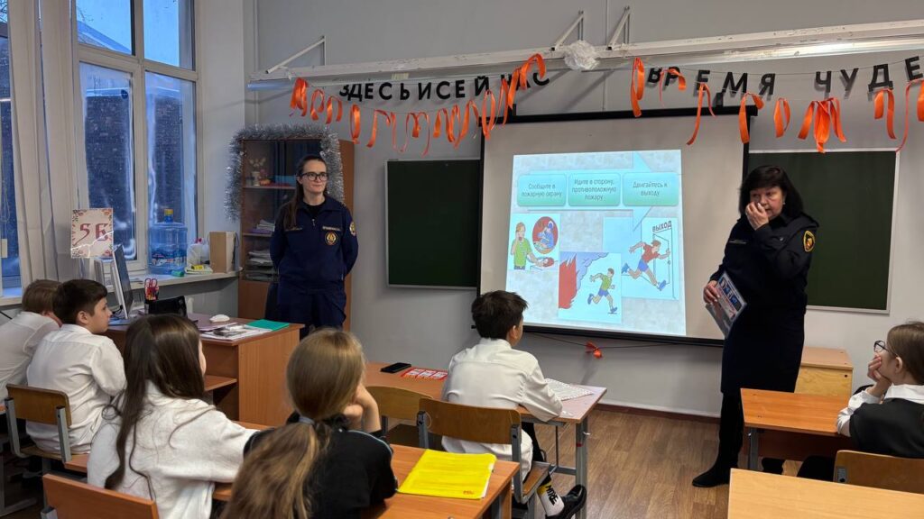 В рамках темы «Безопасный Новый год» разобрали причины пожаров, способы тушения небольших возгораний, а также повторили действия учащихся при эвакуации.