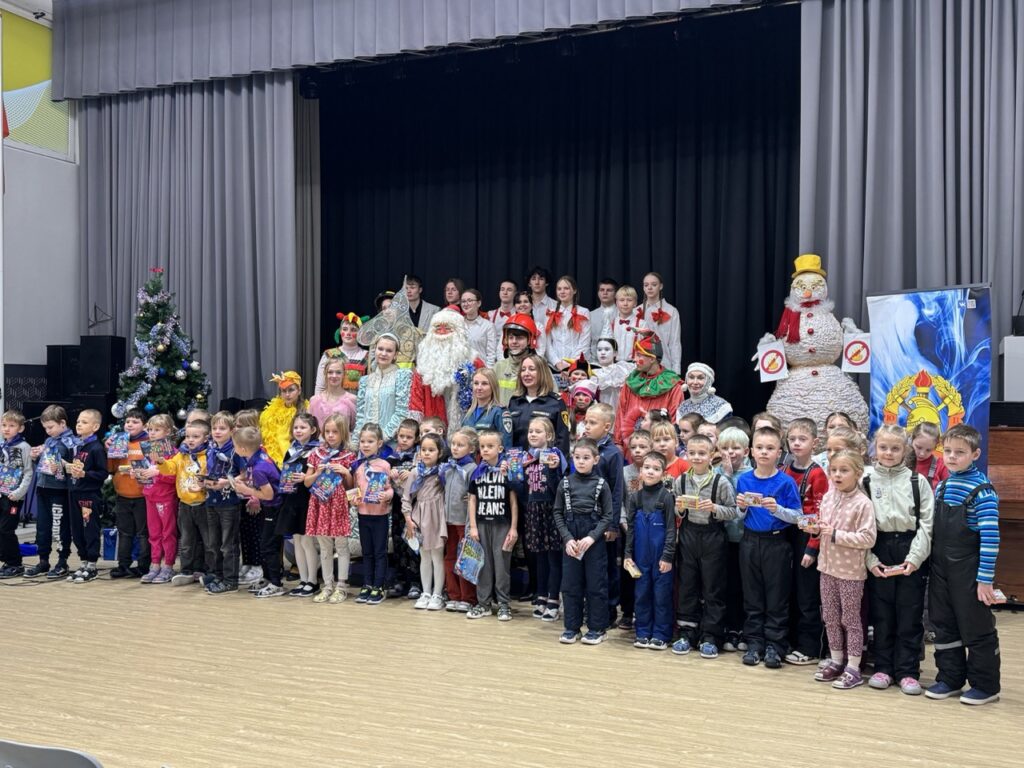В завершении праздника детей поздравили с наступающим Новым годом, вручили пазлы «Пожарная машина» и памятки «Новый год праздник для детей и взрослых».