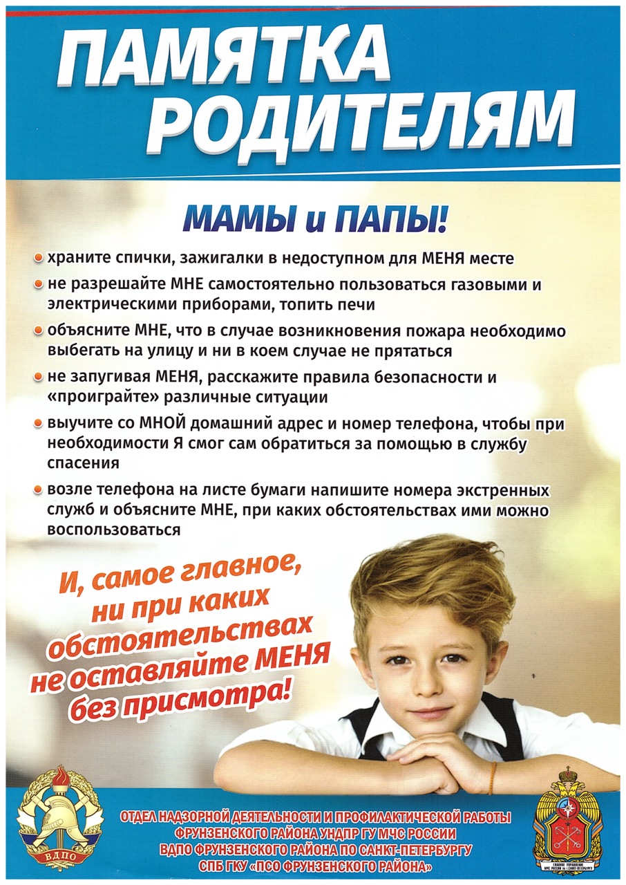 Управление по Фрунзенскому району ГУ МЧС России по г.Санкт-Петербургу напоминает: безопасность детей — ответственность взрослых!