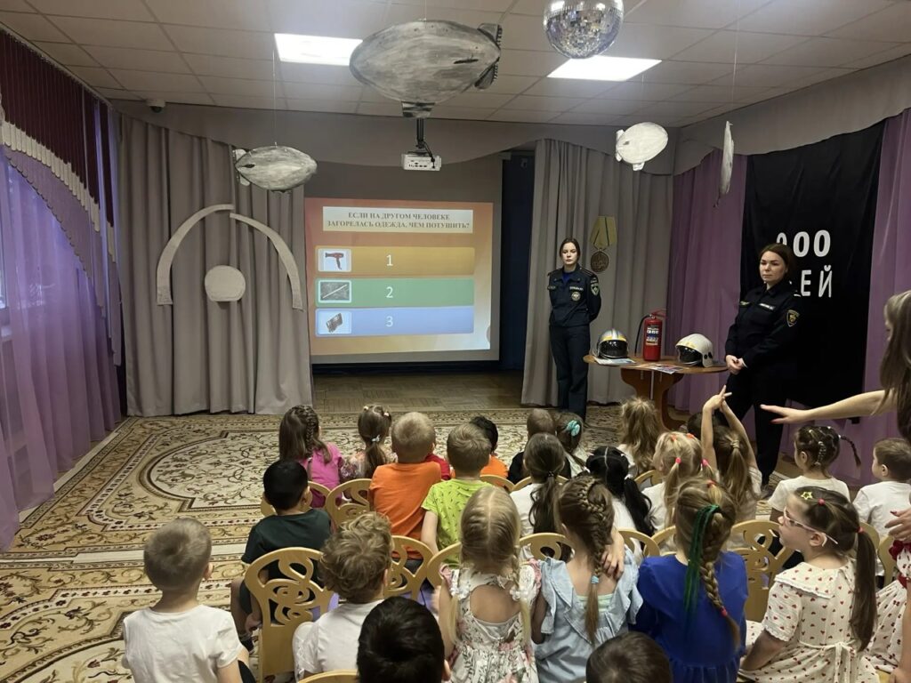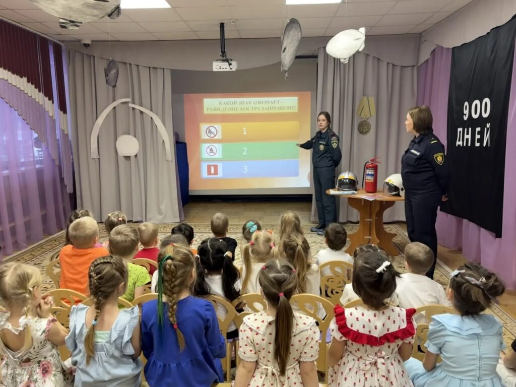 В завершение мероприятия дети участвовали в пожарной викторине: с удовольствием отгадывали пожарные знаки, узнали, как выглядит пожарная машина и почему красного цвета, по какому номеру телефона вызывать пожарных. В финале беседы дети примерили каски пожарного — это было настоящее приключение! Сотрудники чрезвычайного ведомства подчеркнули, насколько важно знать правила пожарной безопасности и соблюдать их ежедневно.