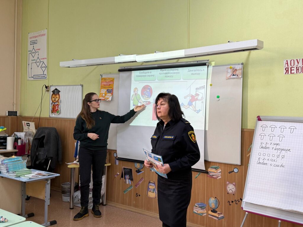 13 февраля 2026 года сотрудники Центрального отделения СПб ГО ВДПО Игнашкова К. А. и СПб ГКУ ПСО Центрального района Александрова И. В. провели тренировочное занятие по эвакуации для учащихся 1-го класса ГБОУ школы №550.