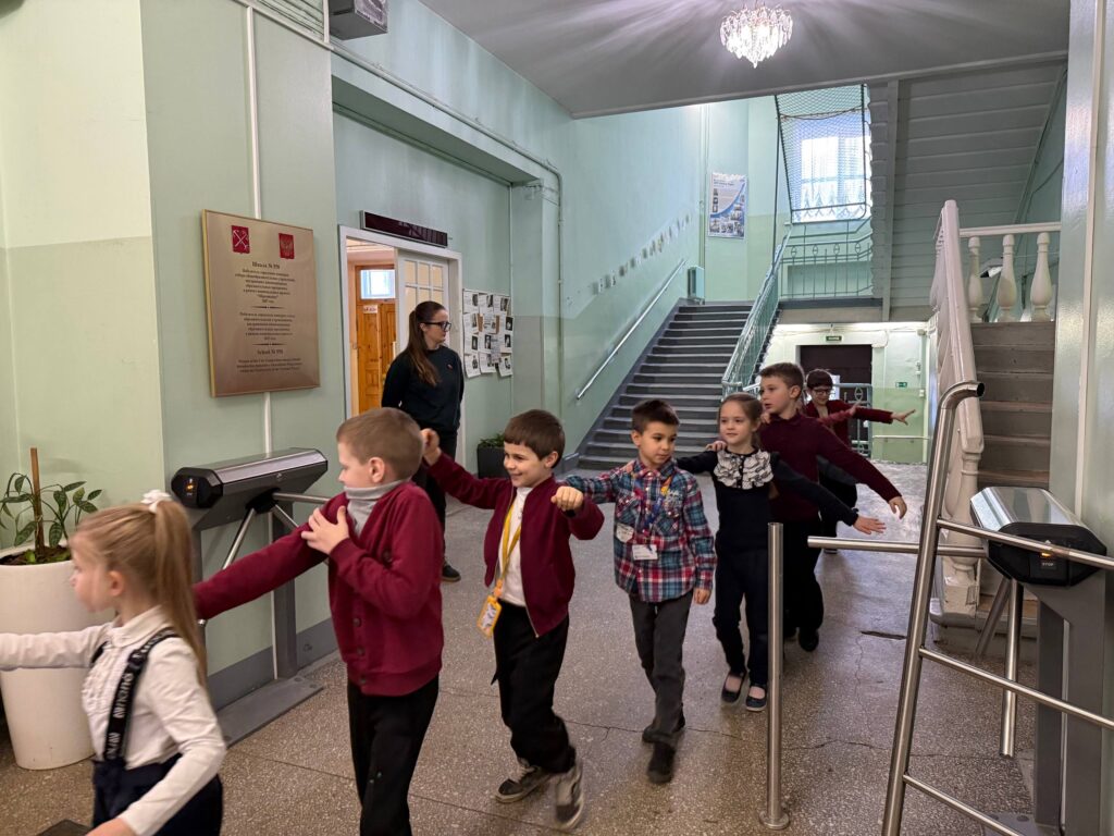 После общения прошла тренировочная эвакуация с правильным построением класса и выводом на 1-й этаж. В занятии приняли участие 24 ребенка и 1 педагог.