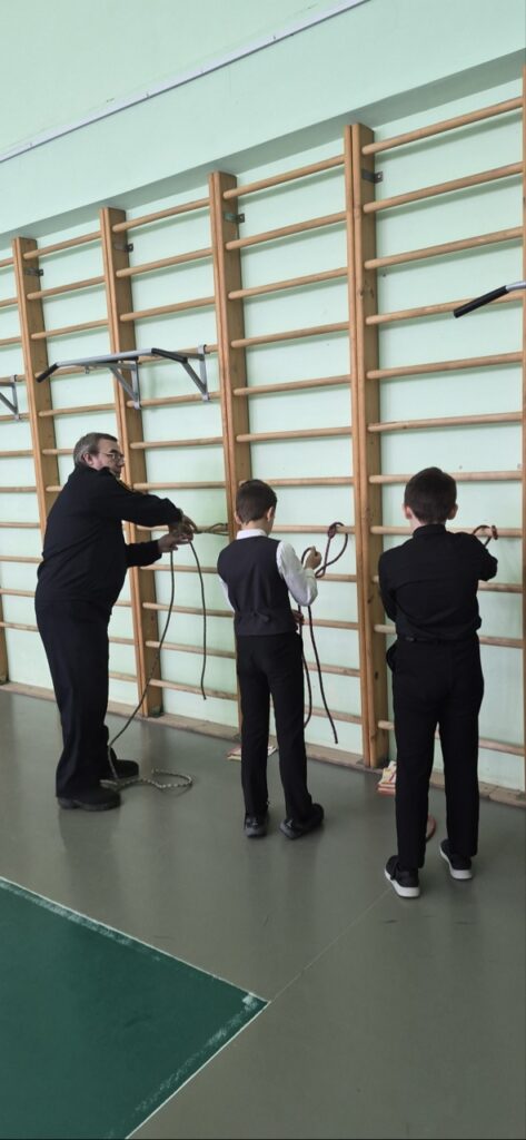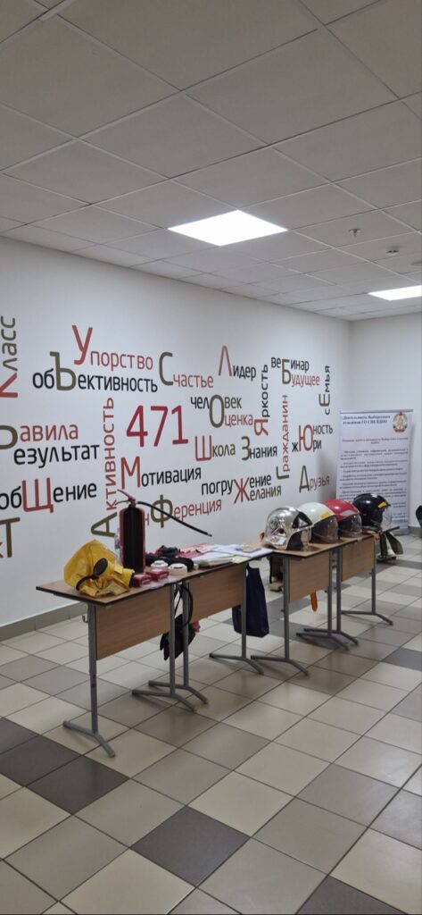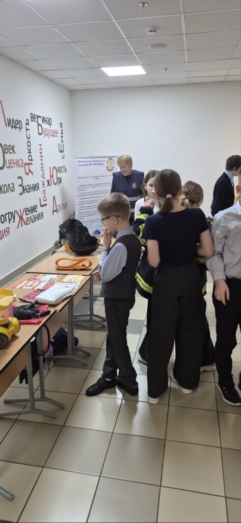 Выборгское отделение СПб ГО ВДПО совместно с управлением по Выборгскому району ГУ МЧС России по г.Санкт-Петербургу и СПб ГКУ «ПСО Выборгского района» для учеников младших классов подготовили интерактивные зоны по надеванию одежды пожарного, вязание узлов, для организации страховки и самоспасения, спасения пострадавших, демонстрация пожарного и спасательного оборудования, дымовая камера, в которой участники включались в аппараты для дыхания и находились в зоне ограниченной видимости.