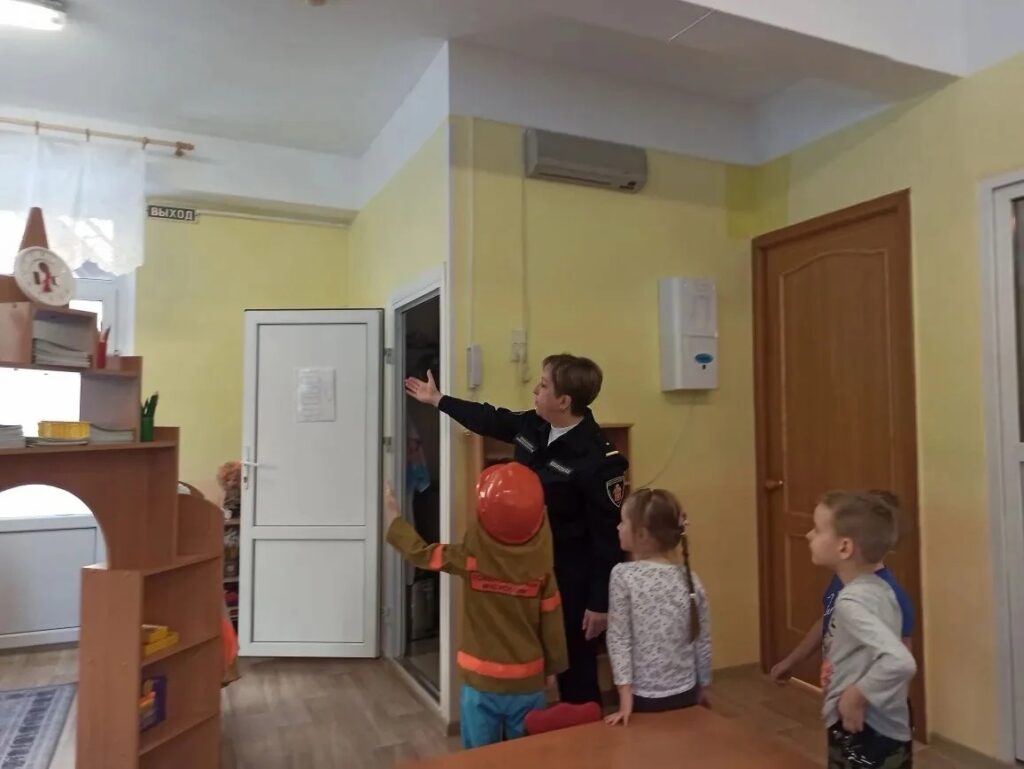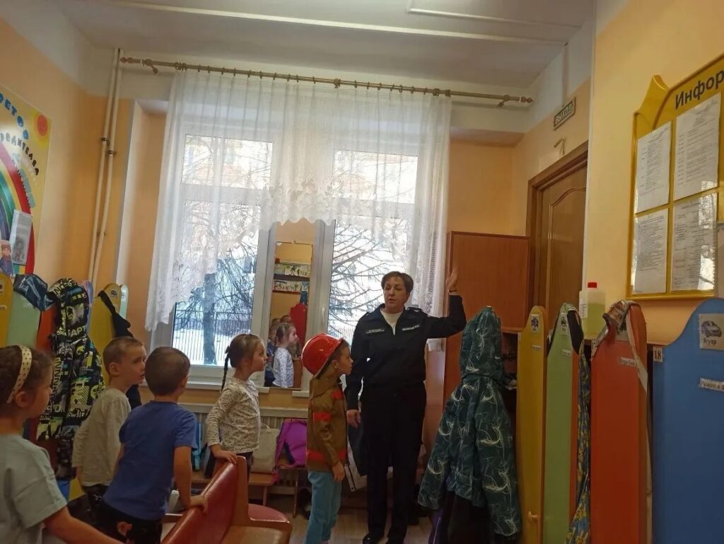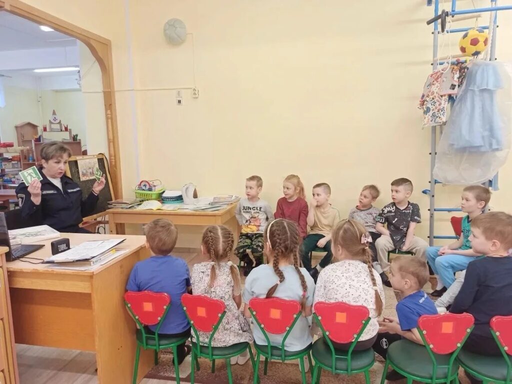 Занятие прошло в формате живого диалога. Дети с большим интересом слушали гостей в форме, отгадывали загадки и сами показывали, где в их группе расположены такие знаки.
