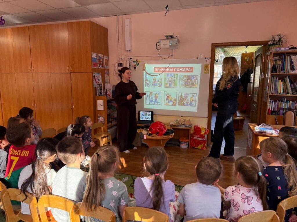 Программа урока включала презентацию с наглядными материалами, на которых были изображены как правильные, так и опасные ситуации в быту, а также был проведён инструктаж с персоналом детского сада. Дети с интересом рассматривали яркие картинки и сами пытались найти ошибку в поведении сказочных персонажей. Затем был показан мультфильм о правильном использовании огнетушителя, где в доступной форме объяснялось, как работает этот прибор.