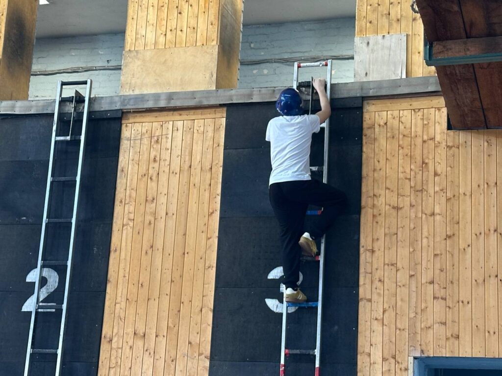 Во время занятия ребята продолжили совершенствовать навыки, необходимые для успешного выступления на соревнованиях. Участники отрабатывали подъём по штурмовой лестнице, развертывание пожарного рукава, а также другие элементы, входящие в программу пожарно-спасательного спорта.