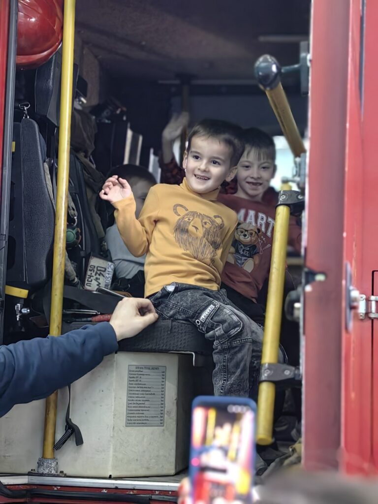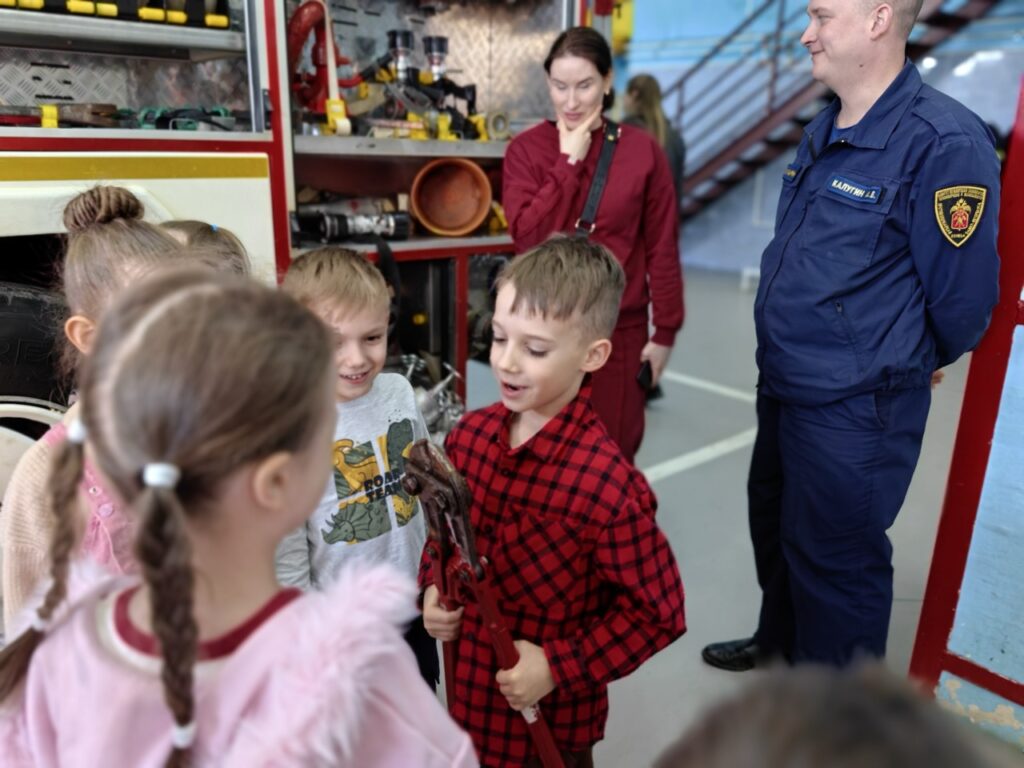 Искрящиеся глаза детей были полны восторга, когда они увидели мощные пожарные автомобили. Опытные пожарные — командир отделения Алексей Сергеевич Бондарь и пожарный Александр Юрьевич Смертин подробно рассказали ребятам об оснащении спецтехники, продемонстрировали боевую экипировку и снаряжение. Юные слушатели узнали о сложных алгоритмах спасения людей и о том, как важна каждая секунда во время пожара. Кульминацией технической части экскурсии стала возможность прикоснуться к истории и современности: каждый ребенок смог подержать в руках настоящее пожарное оборудование и на мгновение почувствовать себя частью пожарного расчета.