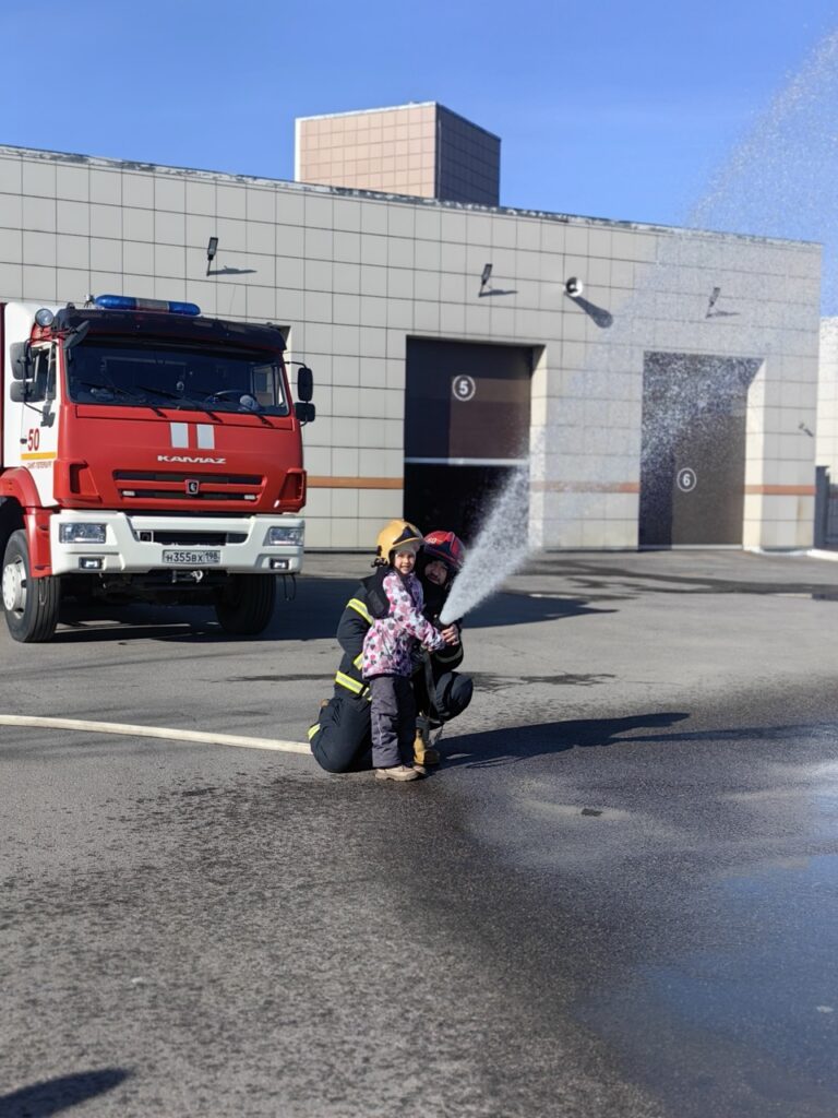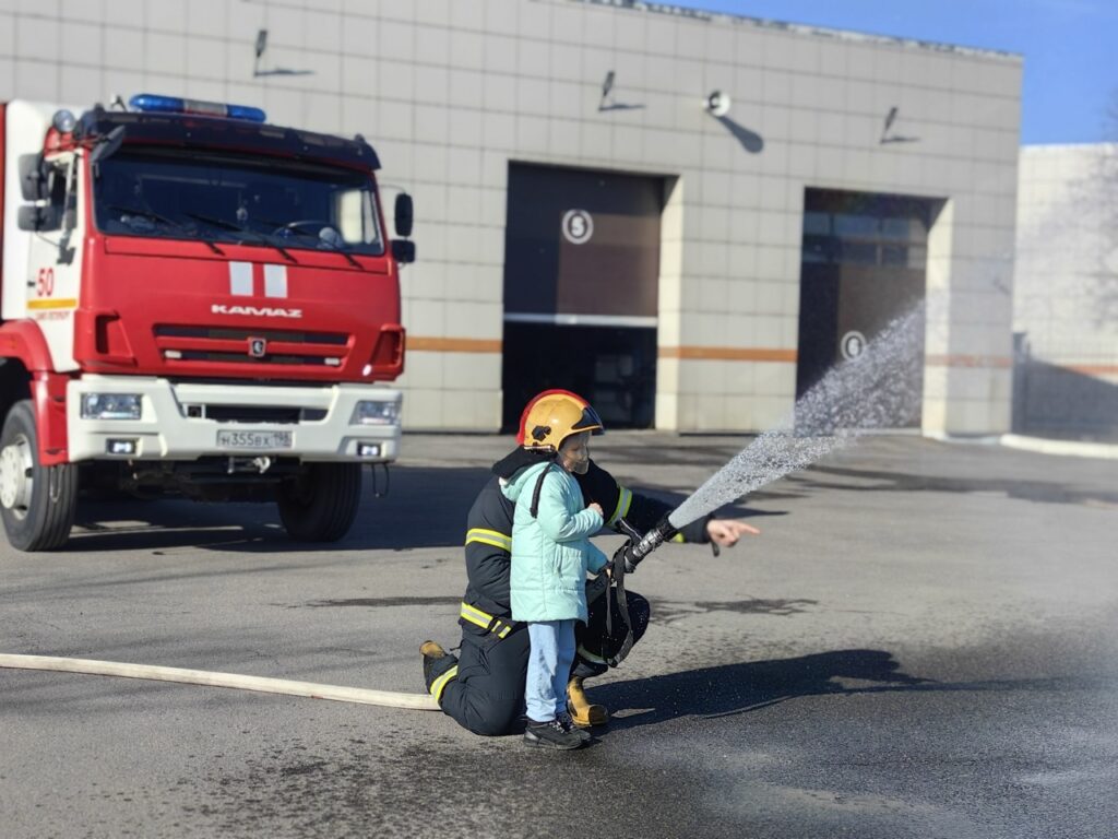Но самым запоминающимся и впечатляющим событием дня стала практическая часть экскурсии. Под чутким контролем и руководством командира отделения Алексея Сергеевича дети получили уникальную возможность потушить условный огонь из настоящего пожарного ствола. Неподдельный восторг, улыбки и счастливые возгласы не стихали на протяжении всего действия.