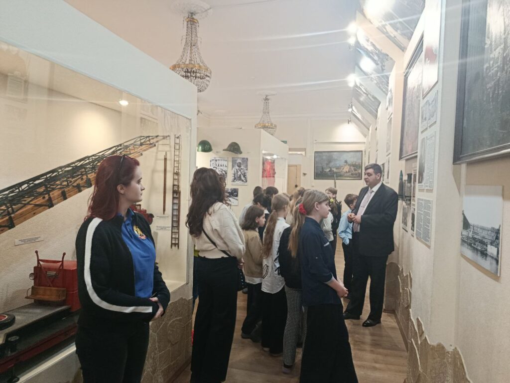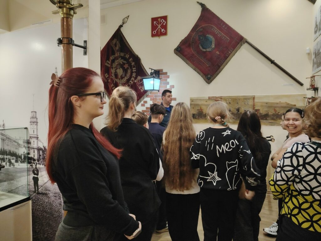 Экскурсию организовали Центральное отделение СПб ГО ВДПО, в лице специалиста по организационно-массовой работе Игнашковой Ксении Андреевны, и Пожарно-спасательный отряд Центрального района, в лице инструктора Александровой Ирины Викторовны.