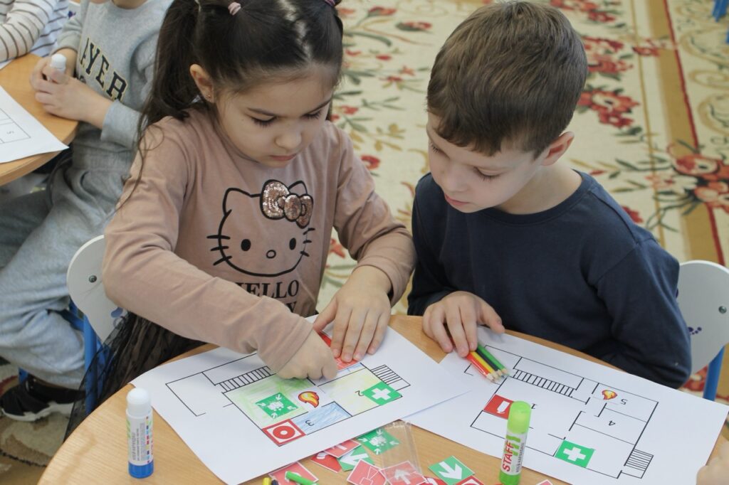 В игровой форме ребятам наглядно продемонстрировали основные пожарные знаки, подробно разъяснили их значение и места возможного расположения. Особое внимание ребят было уделено знакомству с планом эвакуации. Дети узнали, как правильно ориентироваться по плану, познакомились с условными обозначениями и отработали безопасный маршрут к основному эвакуационному выходу. Для закрепления материала сотрудники пожарных структур предложили воспитанникам попробовать самостоятельно на плане-схеме расположить знаки пожарной безопасности и найти кратчайшие маршруты выхода из помещения. В процессе занятия юным петербуржцам рассказали о правилах безопасного обращения с огнем и выучили вместе с ними номера вызова спасателей – 101 или 112.