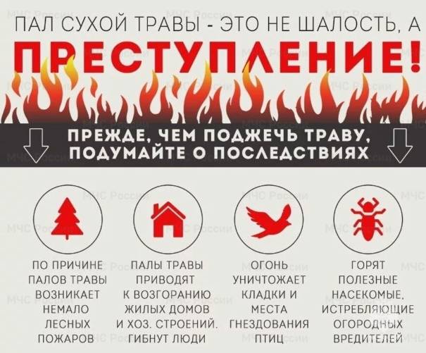 С потеплением растёт число пожаров изза горения сухой травы. Причинами могут быть: окурок, шалость детей, поджог. Огонь быстро распространяется!Как правило, такое горение, в большинстве случаев неконтролируемое, распространяется с большой скоростью и на больших площадях. Травяные палы охватывают большие площади и распространяются очень быстро.
