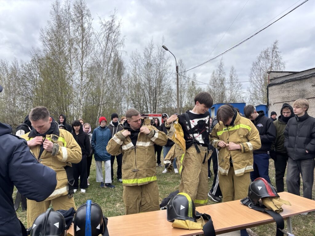 Ребята соревновались в одевании боевой одежды пожарного на скорость, прокладывании пожарной рукавной линии, подъеме по штурмовой лестнице на второй этаж учебной башни, а также в тушении условного очага пожара.